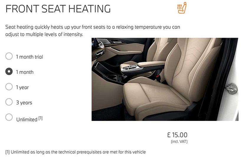 New BMW owners will be able to subscribe to heated seats for a month, year, three years or for the time they own the car