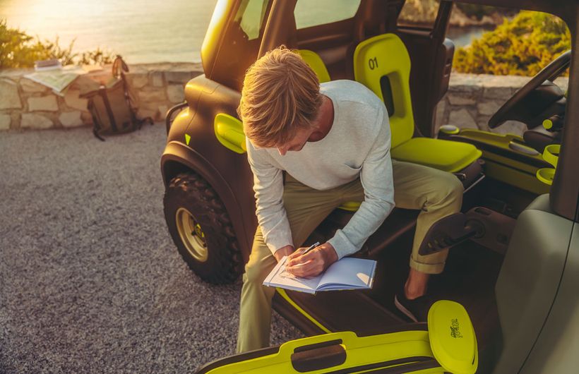 The Buggy’s roof-rack and spare wheel emphasise what Citroen describes as the concept’s ‘spirit of adventure’ while the LED light bar on the roof’s leading edge boosts the rather lacklustre performance of the Ami’s standard headlights. The light bar also includes a built-in speaker that Citroen claims is perfect for adding atmosphere around a camp fire. However, given the extensive use of plastic in the Buggy’s construction, camp fires are probably best avoided.