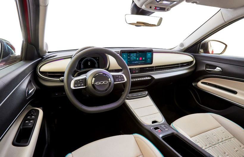 Inside, the 600e features power seat adjustment and a back massage function along with Ivory synthetic leather seats with FIAT monogram, turquoise accents and three-stage heating for maximum comfort. Velour floor mats, 40/60 rear seats, USB type A & type C + type C on second row, a wireless charger for smartphones and keyless entry with proximity sensor, complete the equipment. The 600e’s boot can hold up to 360 litres of luggage, while Fiat’s designers have created an additional 15-litres of interior storage.