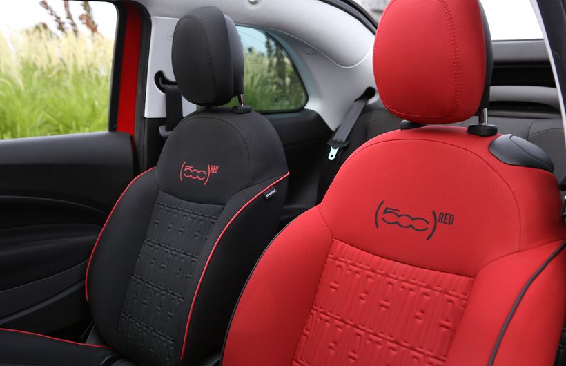 The quirky interior features include a red driver's seat No prices have been announced in the UK but the car will sit in the middle of the range where it is expected to be a big seller. Fiat says this is to maximise sales and therefore donations to the charity.