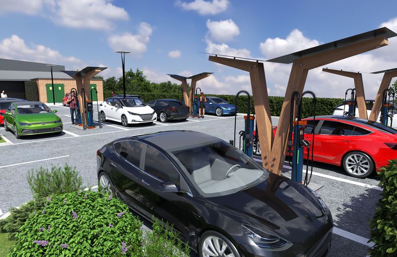 Hubs will be positioned next to A-roads and will have a range of facilities for drivers Kempower technology