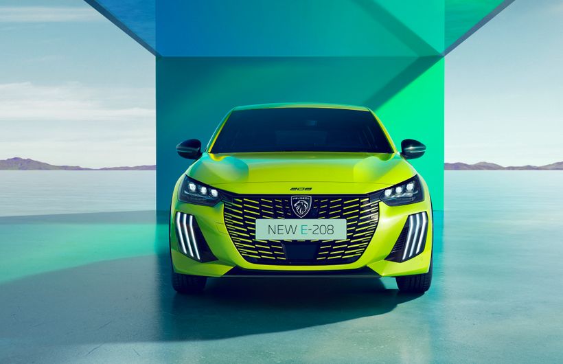 Refreshed e-208 gets new grille and LED day-running lights. The colour – 'Agueda Yellow' – is new, too