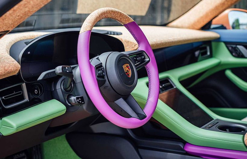 The cabin also features cork on the dashboard, A-pillars and the top of the steering wheel. Sections of the centre console and floor mats are also finished in cork. Incorporating the cork trim proved something of a headache for Porsche: the wood comes in rolls, and has to be hand cut to the exact shape to take into account the dashboard’s complex curves.