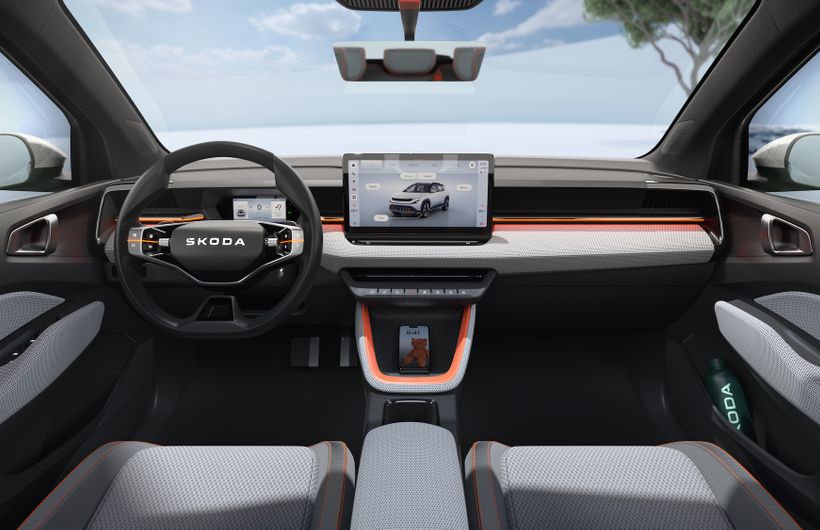 The Epiq also debuts a new design theme for Skoda. Called 'Modern Solid', the interior consists of "durable, practical and sustainable materials", says the carmaker, and a number of new features for a Skoda including new lettering on the steering wheel, a digital key which is linked to the driver's smartphone, and bi-directional charging.