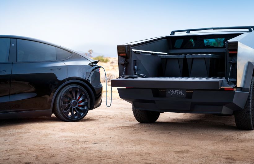 Cybertruck has "Powershare" vehicle-to-load charging capability It's a heavy vehicle, too, with Tesla claiming a weight of over 6,800kg, while all-wheel drive and Cyberbeast models can tow up to 4,990kg. The entry-level rear-wheel drive model, due in 2025, comes with a range of 250 miles and can tow up to 3,402kg.