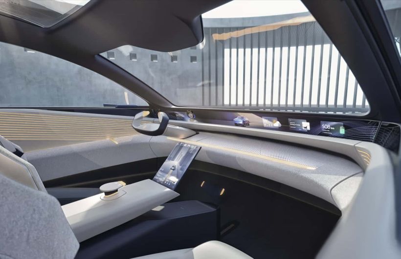 The interior is referred to as a living space using sustainable, animal-free materials and featuring a full-width screen across the dashboard that extends into the doors, plus window surfaces that also show avatars and messages inside the car for a full wraparound display.