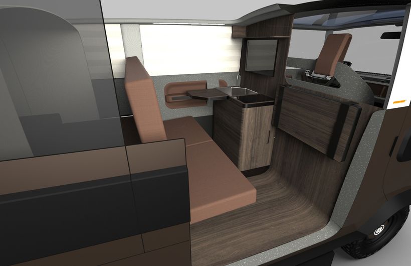 Lightweight construction and modular bodywork allows for a practical camper conversion Of all the models available from launch, the camper has arguably the most appeal. It features a pop-up roof, bed, fridge, television and kitchen and as with all models in the range can be specified in off-road form with a host of colour and interior options.
