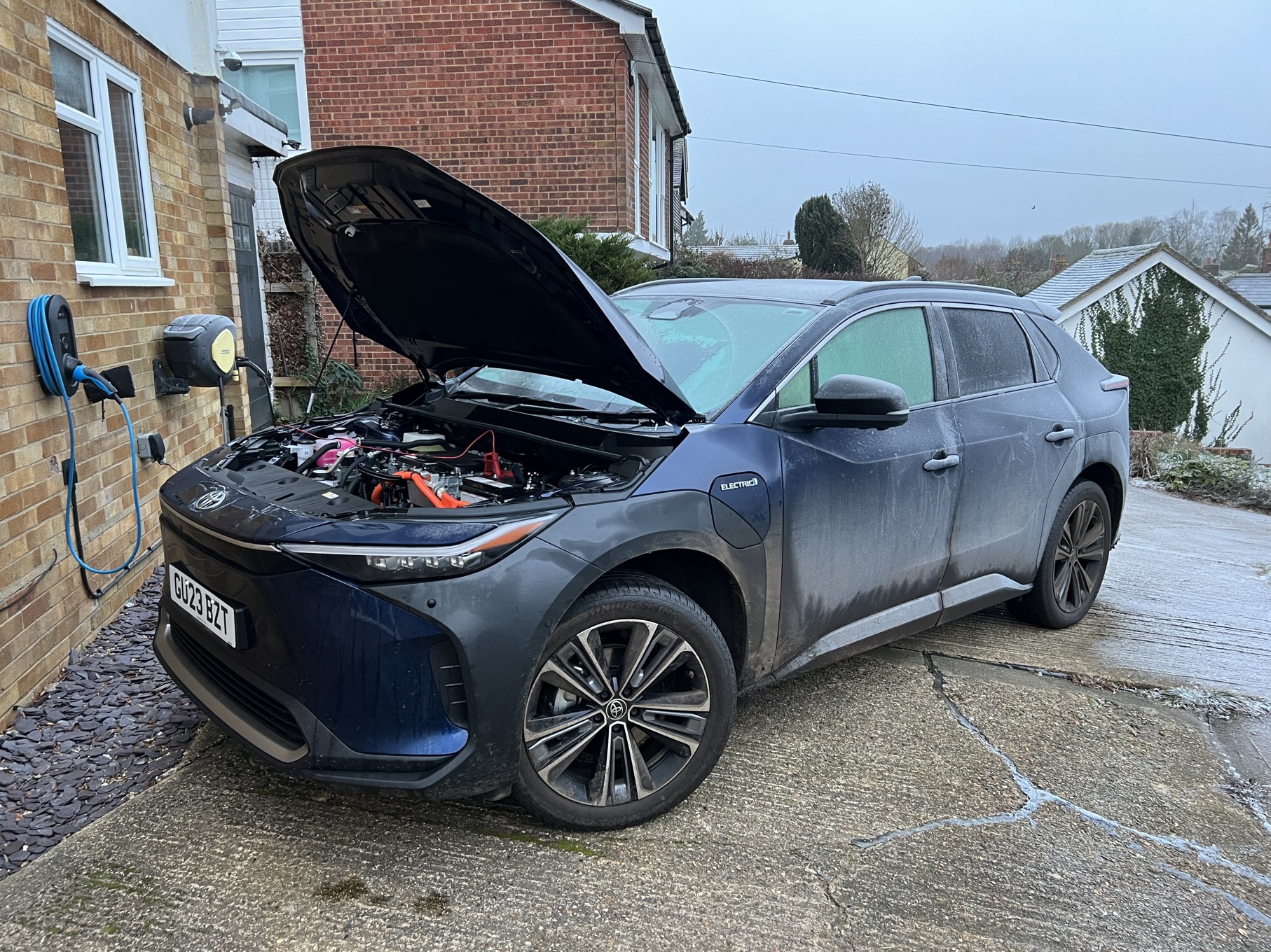 The car I’m running is the Vision trim and I asked for the all-wheel drive as it’s winter and my driveway is steep enough to make the postman complain most days. Unlike some so-called soft roaders, the bZ4X has some proper off road ability. I’ve taken a bZ4x on a trail which was surprisingly brave and it coped well. It’s no Land Cruiser, but if you need a bit more grip then it’s much more competent than I expected. Even the track I used for these photos got a little hairy in places, but the Toyota romped through, even on its road based tyres.