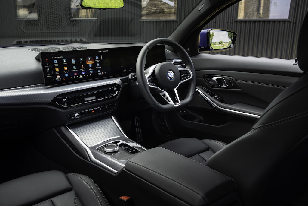The big news with the 2024 facelift of the BMW 3 Series is the addition of the huge, curved screen that sits on top of the dash. The central part of it is the touchscreen, with your built-in nav, media function and wireless Apple CarPlay and Android Auto. Unlike most other cars today, the BMW 3 Series has kept its rotary controller and physical shortcut buttons that help you to hop between the iDrive functions more easily when you’re driving.