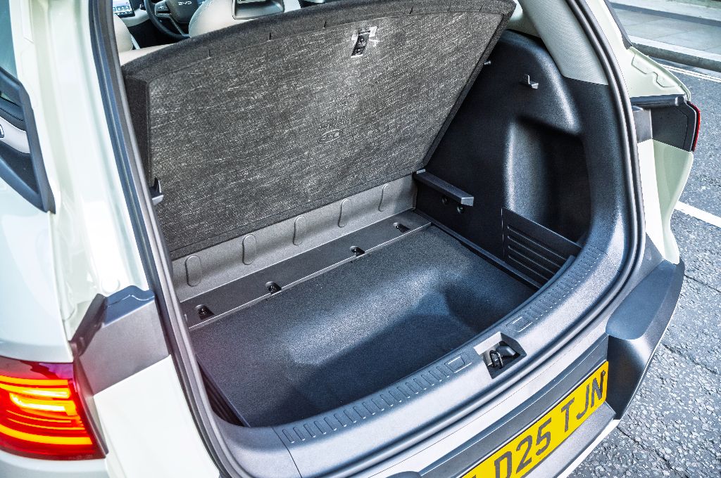 It is, however, pretty huge in the back seats. A couple of average-sized adults (I proudly class myself in that ‘average’ category) will be very comfy, and this is a much more comfortable back seat space than you get in the Renault 4 and Ford Puma Gen-E. There’s no centre armrest, which is annoying, but the very smart-feeling materials, two USB charging ports and fancy ambient lighting that even the basic BYD Atto 2 Boost will get goes some way to make up for that.