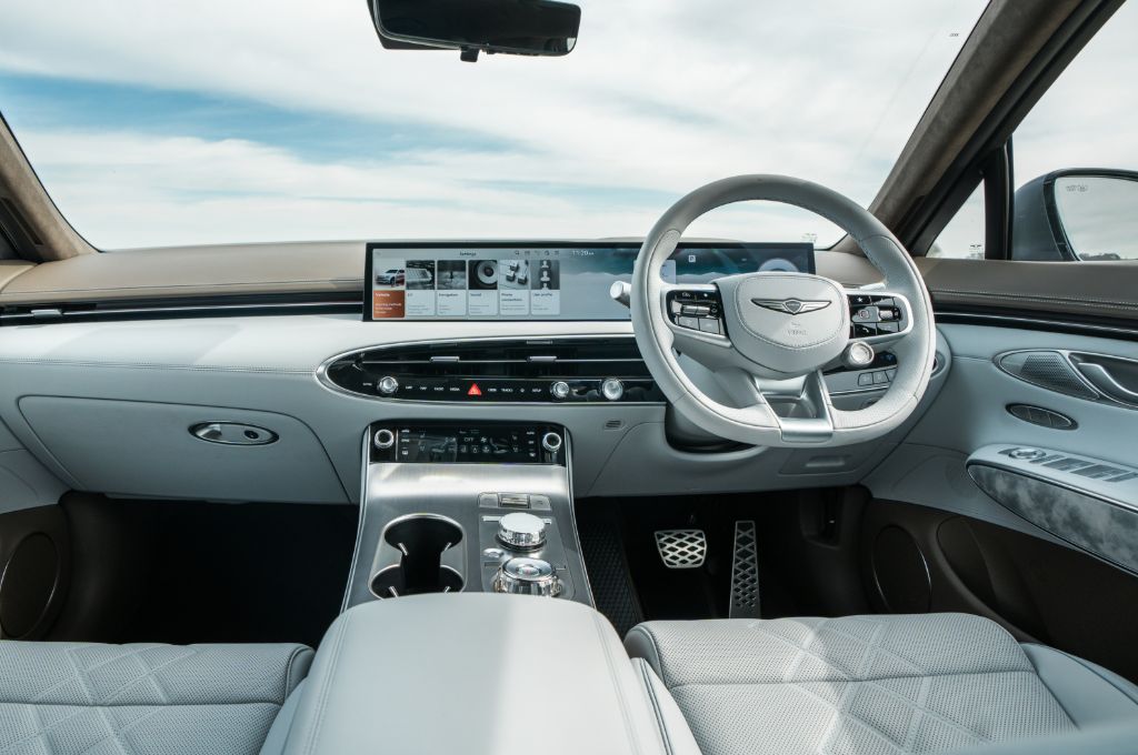 That soft look is matched by soft-touch finishes wherever you’d want them and complemented by a robust, high-quality feel from all the switches and controls. Thankfully, there are plenty of switches and controls too. Although it talks of reductive design, Genesis has sensibly left simple physical controls for important features such as the climate control, drive modes and volume, while many of the driver assist systems are managed by well-conceived steering wheel buttons.