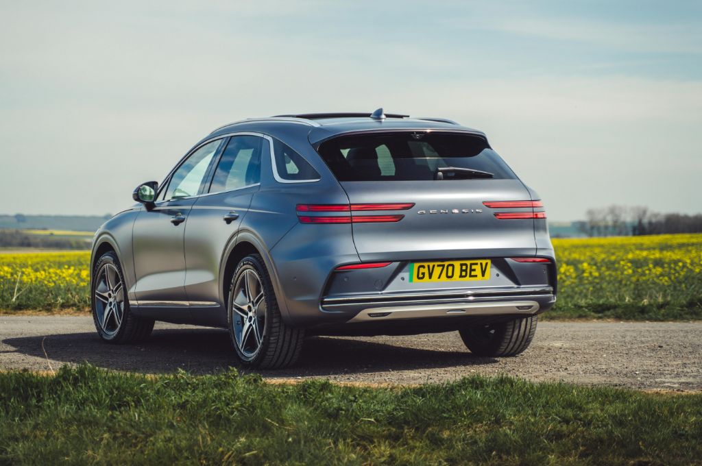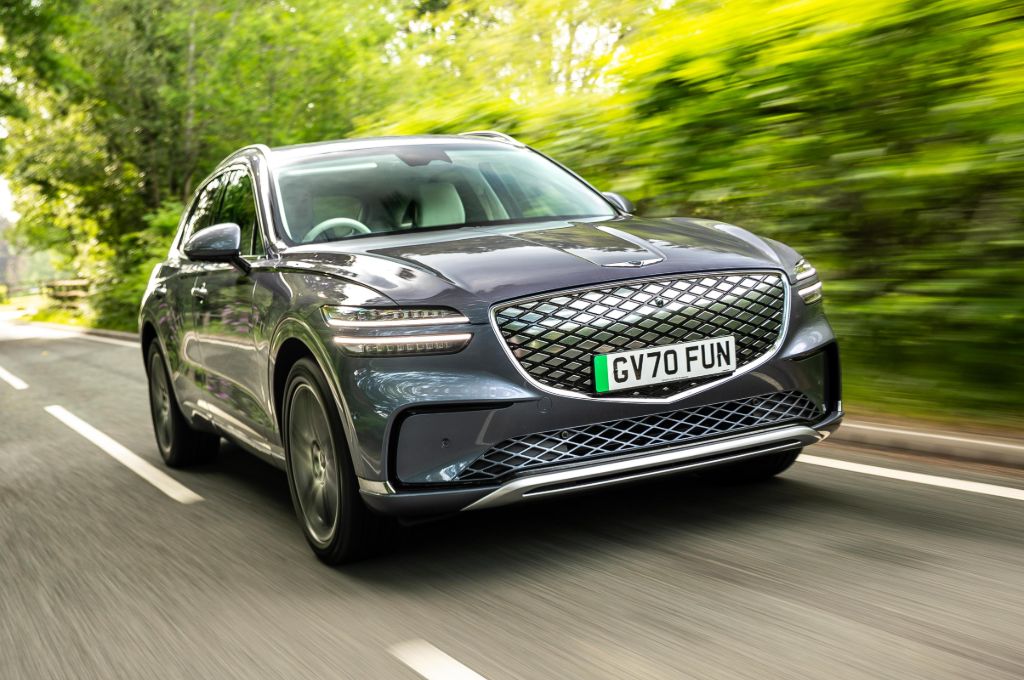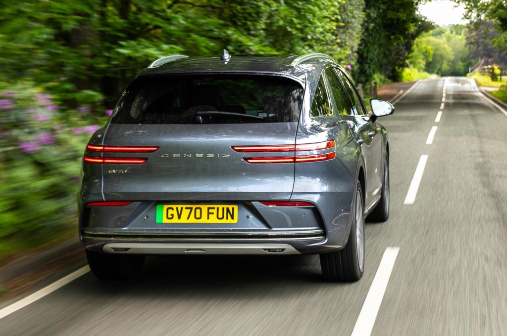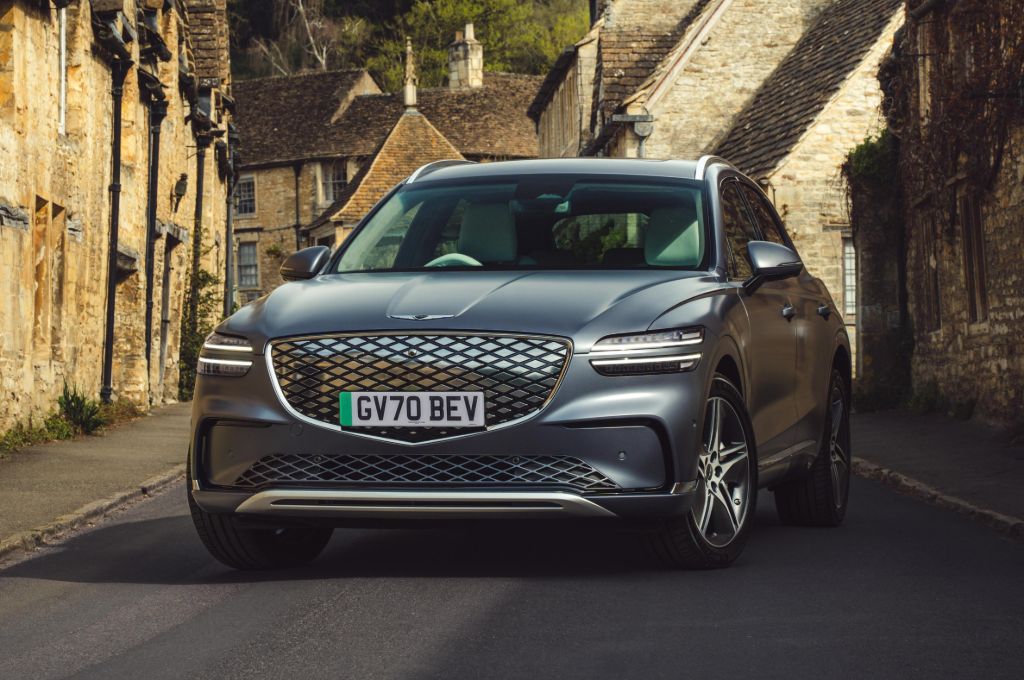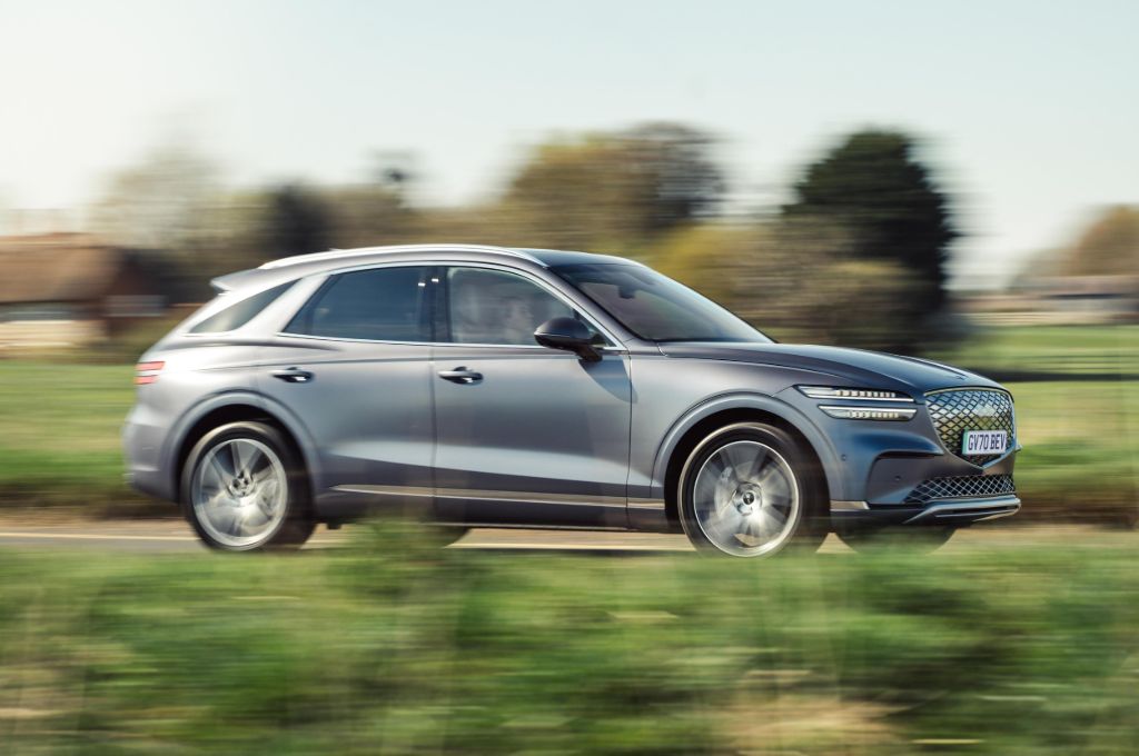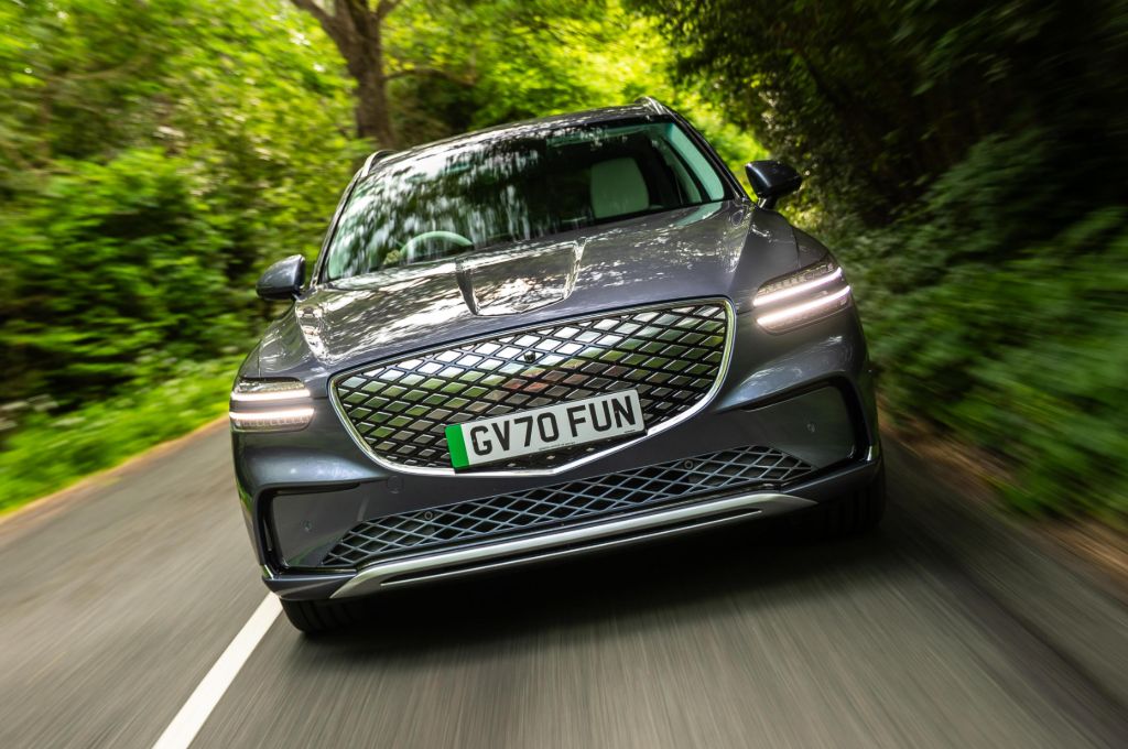 Even in this 2.3-tonne SUV, that means a 0-62mph time of 4.2 seconds and a top speed of 146mph. That’s not quite enough to keep up with the monsters of the segment, such as the Kia EV6 GT or the Ford Mustang Mach-e GT, but the GV70 is a different beast, built more for quick but calm progress than B-road shredding.