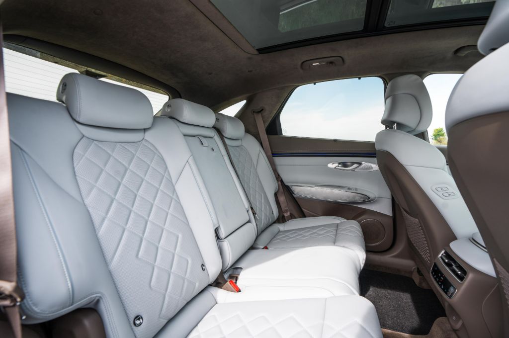 Tick another option box and you’ll end up with 18-way electrically adjustable seats with heating, ventilation and a massage function. These also feature Genesis’s smart posture assist, which subtly adjusts the seat and activates the massage function to stop your back going stiff on long journeys. The same option pack adds heated seats for your rear passengers, who can also benefit from their own third climate control zone.