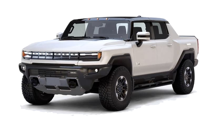 • GMC Hummer EV, Action shot, white, Front two angles, Zoomed in