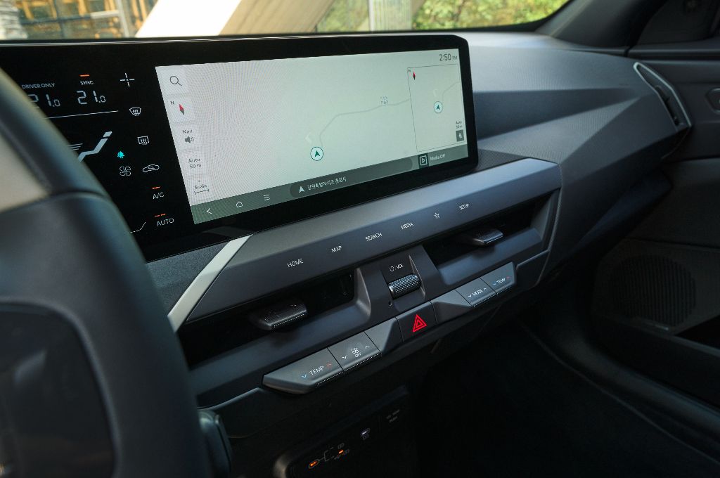 There’s also the off-centre Kia logo on the wheel, as seen in the Electrifying Car of the Year – the EV3. It all feels smart, and it’s one of the best dash layouts in the class when it comes to user friendliness. I’m still not sure that the little touch screen behind the steering wheel that controls your more climate control settings is really necessary. It seems a bit fussy and Ijust never use it, given that you’ve got the proper air-con buttons for the temperature, not to mention a new voice control system with ChatGPT.