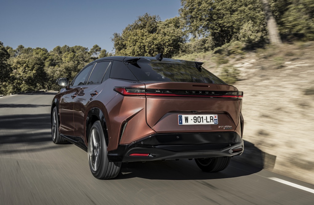 • Lexus RZ 450e, front action, two tone copper/black, French registration