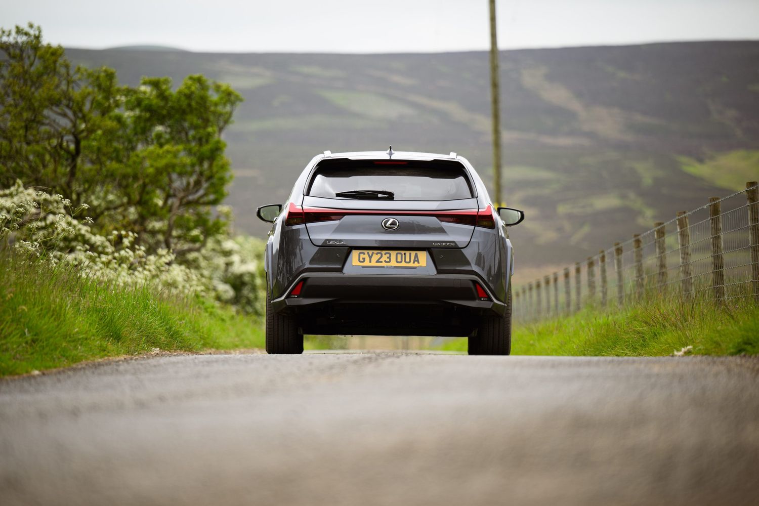 If you want stats, we have them: 0-62mph in 7.5 seconds and a 100mph top speed. Range? Well that depends on which alloy wheels you choose. With the 17-inch standard wheels, the UX300e will do 273 miles on a full charge, but if you opt for the larger, wider (and therefore harder to propel) 18-inch wheels, you’ll see that capability drop.