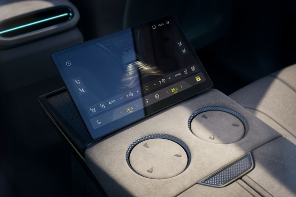 In the rear, customers can choose between a three seater bench or a four-seater layout that features two individual sports seats either side of a large centre console. Thanks to the Eletre’s vast. three metre wheelbase and flat floor, the rear of the car feels remarkably spacious. Our car came with the four-seater layout which offers a genuine first-class passenger experience. The seats come with similar levels of adjustability as those in front and offer exceptional support. The centre console is home to (even more) storage, along with a pop-up infotainment display that allows passengers to alter their seating position, move the front passenger forward and control the climate and audio functions.