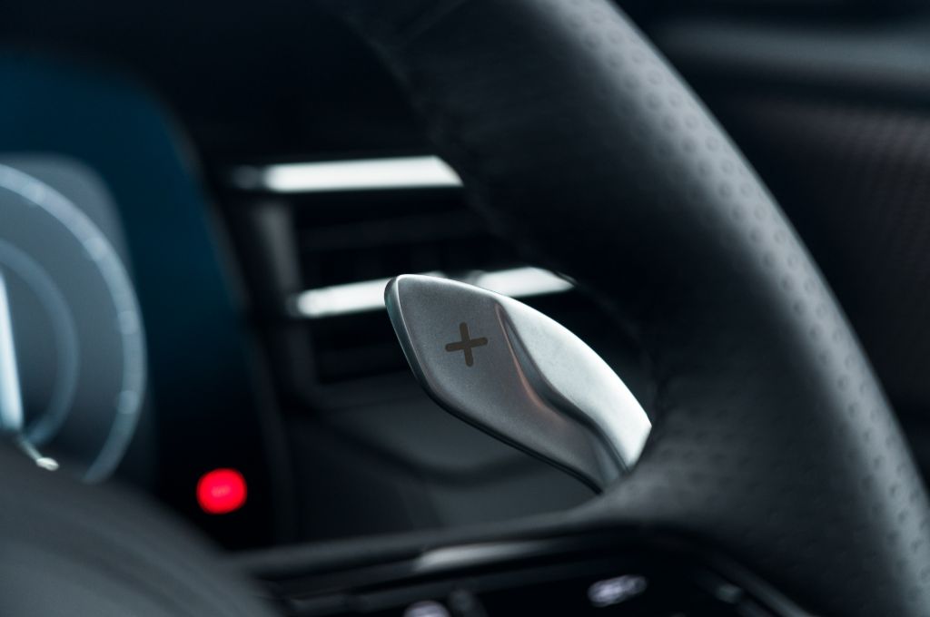 The Maserati Grecale Folgore has a lovely, slim steering wheel with big paddles for adjusting the brake regen’ – which I love. Maserati has always offered gorgeous steering wheels. BMW could learn a lot from them, in that respect…