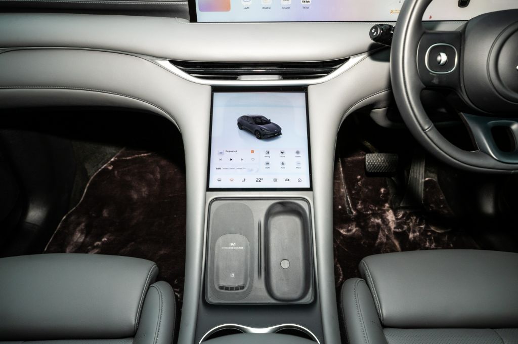 ​The interior design of the IM6 is bland but inoffensive, and I reckon the materials and general perceived build quality are pretty good. There’s a huge amount of screen in here, too. A 26.3-inch panoramic driver display sits on top of the dash, and offers integrated wireless Apple CarPlay and Android Auto readouts. There’s also a portrait, 10.5-inch touchscreen in the centre of the dash that control’s most of the car’s functions and infotainment.