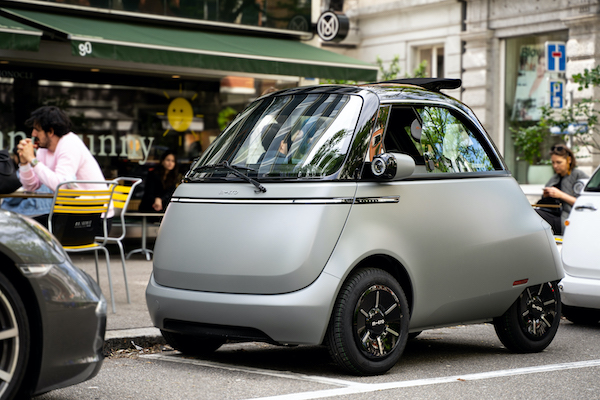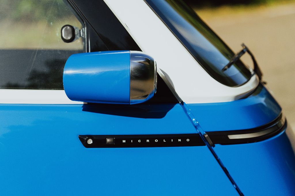 The tiny headlights are attached to the wings like feelers and shine with LED technology - giving the Microlino a unique light signature at night.