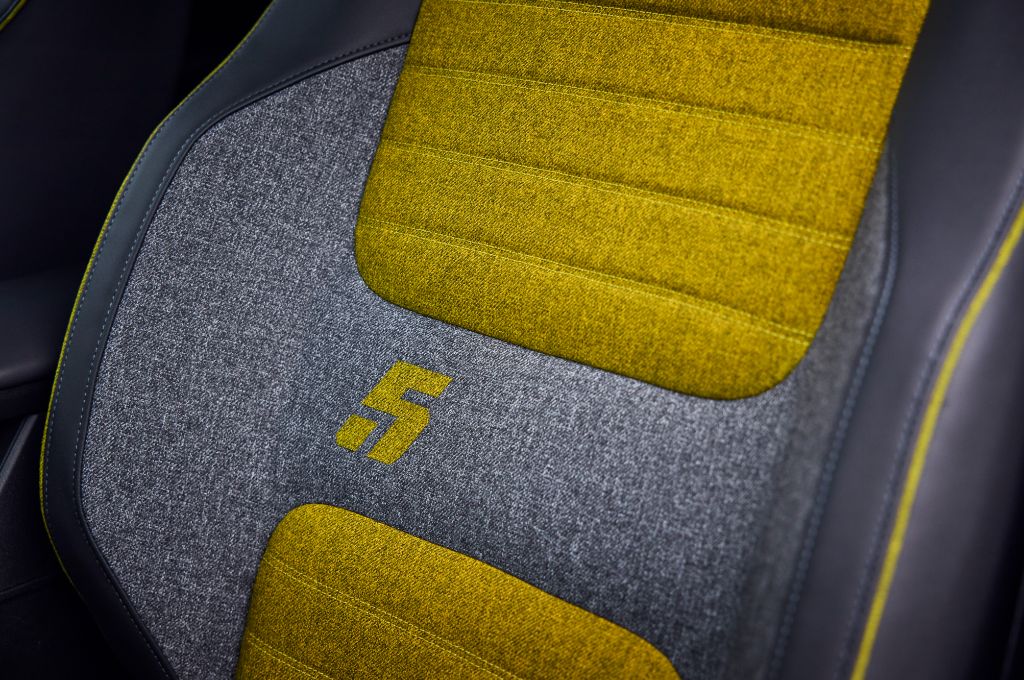 The 5 looks as cool inside as it does outside - especially if you go for top-spec Iconic Five trim, which gets the matching colourful upholstery design; ‘heather yellow’ to match the Pop Yellow exterior colour is my favourite. I’ve put some pics of the Renault 5 in a variety of different colours in the gallery, so do have a look, as you can get it in all sorts of different colours. I rather like the classy dark blue with gold accents.