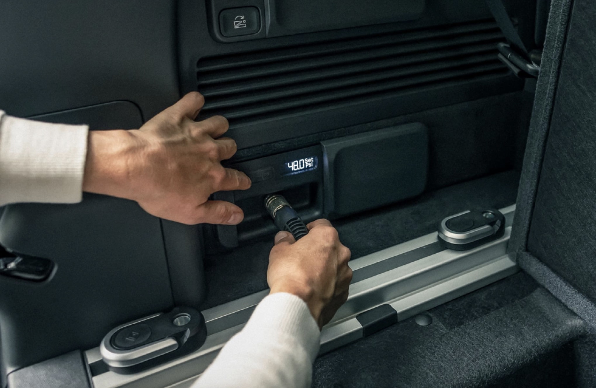 Also on the list of fun things is a Bluetooth speaker that stows underneath the centre console. It charges when it’s tucked in its little cubby so no need for cables and it’s always ready to go when you want some music. Sure, there’s an audio system, but if you’re off the grid camping, this little speaker is great. It even glows a soft orange like a campfire.