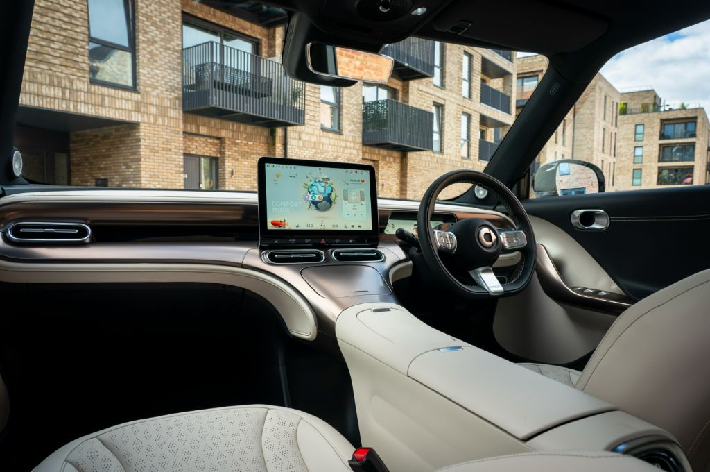 In the cabin, Smart has incorporated an unusually high centre console that divides the driver and passenger areas. The main dashboard rail hosts a large 12.8” high resolution touch screen. A second 9.2” digital instrument cluster ahead of the steering wheel and 10’’ Head Up Display (HUD) ensures that drivers have plenty of information beamed at them. Smart says the car is aimed at younger, tech-savvy buyers, so it plays host to a raft of connectivity features.
