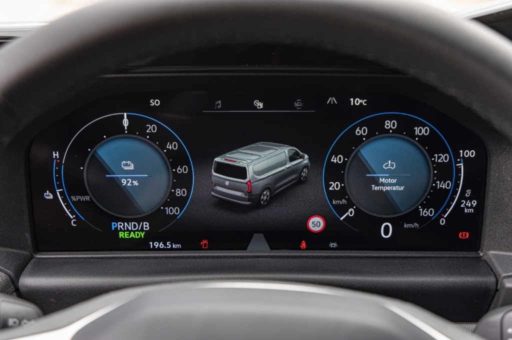 Just like the e-Transit Custom, the VW Transporter is great to drive – Volkswagen have wisely decided to leave the dynamics alone. The only real change is the fitment of all-season tyres as standard, an unusual move which was requested by big fleets as it reduces the overall TCO. It also makes the van much better in slippery weather of course; something which is welcome as the traction can be an issue if the van has little weight over the driven back wheels.