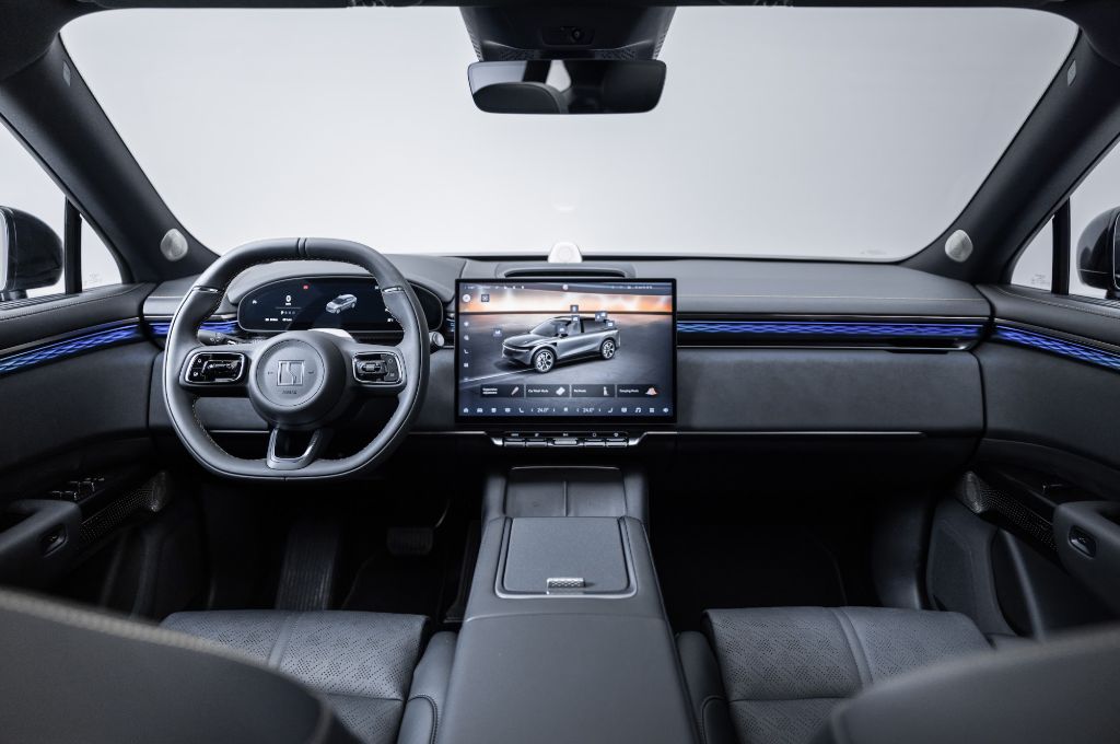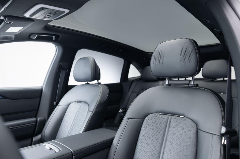 You get heated and cooled front massage seats with loads of different settings, and a 16-inch ultra-slim touchscreen with a Snapdragon chip. No, I don’t really know what that is, either, but it makes for extra-fast screen responses. Predictably, there aren’t really any buttons, and the whole thing is controlled through the screen, but you do get a digital readout behind the steering wheel, and you can add a huge 36-inch head-up display.